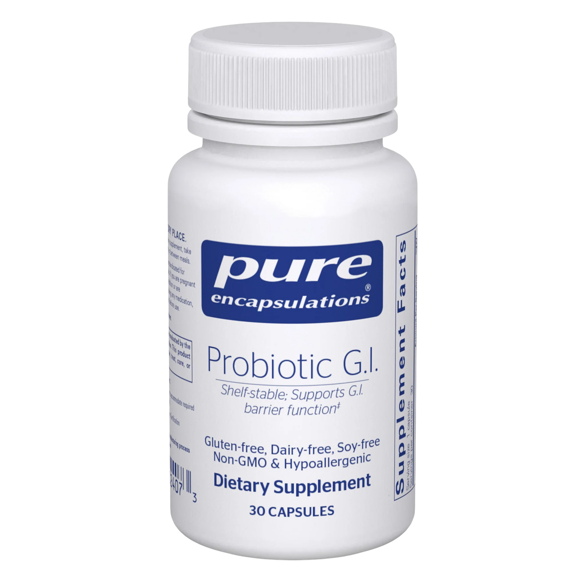 La mezcla de probióticos Probiotic G.I. de Pure Encapsulations está diseñada para apoyar un equilibrio saludable de bacterias en el tracto gastrointestinal. Un microbioma equilibrado ayuda a descomponer y absorber nutrientes, produce compuestos esenciales y fortalece la respuesta inmunitaria. Esta fórmula contiene cepas de Lactobacillus y Bifidobacterium que soportan la barrera intestinal y promueven la salud celular y la función inmunitaria en el tracto digestivo.